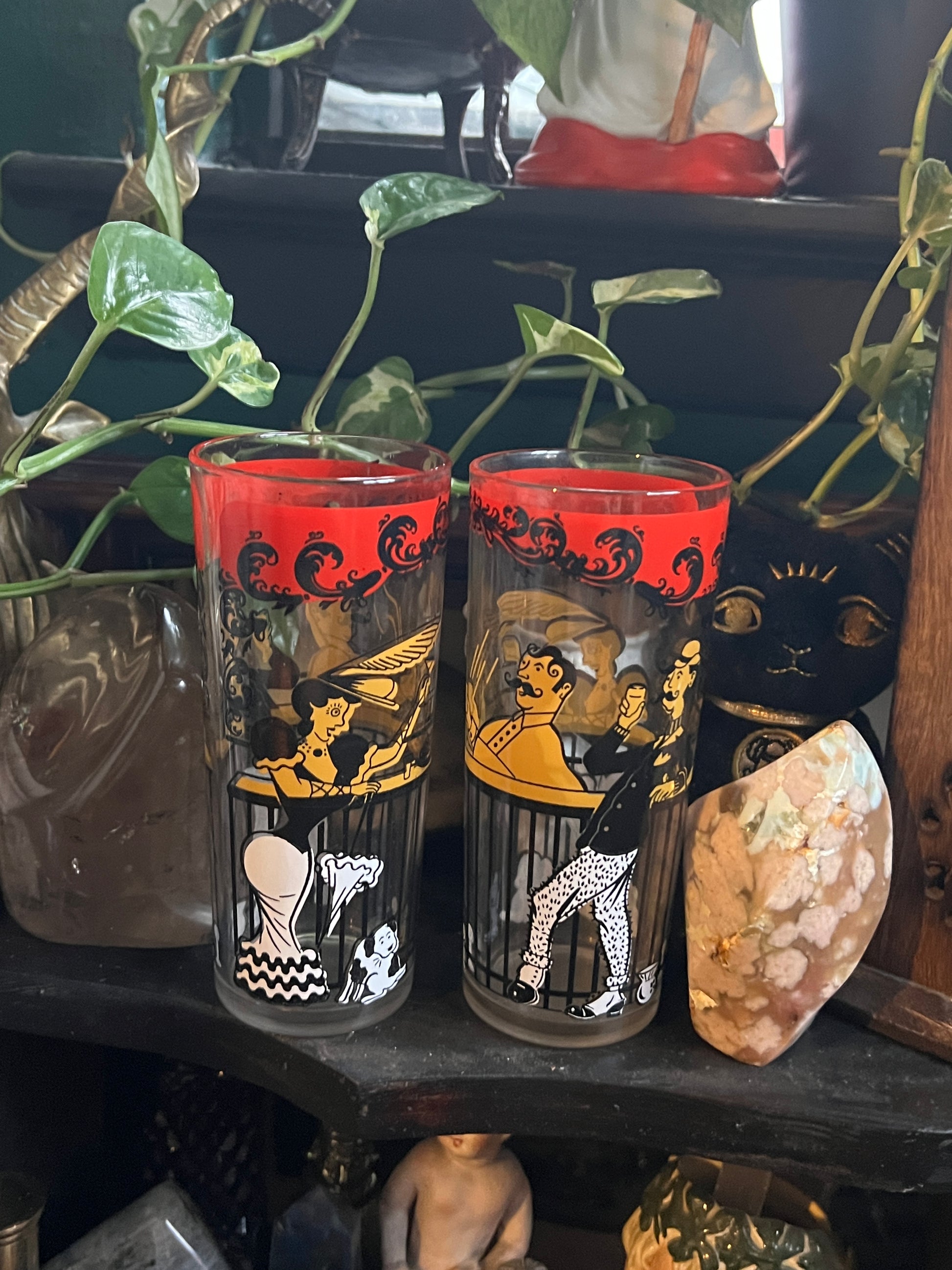 Pair of Hazel Atlas Moulin Rouge drinking glasses