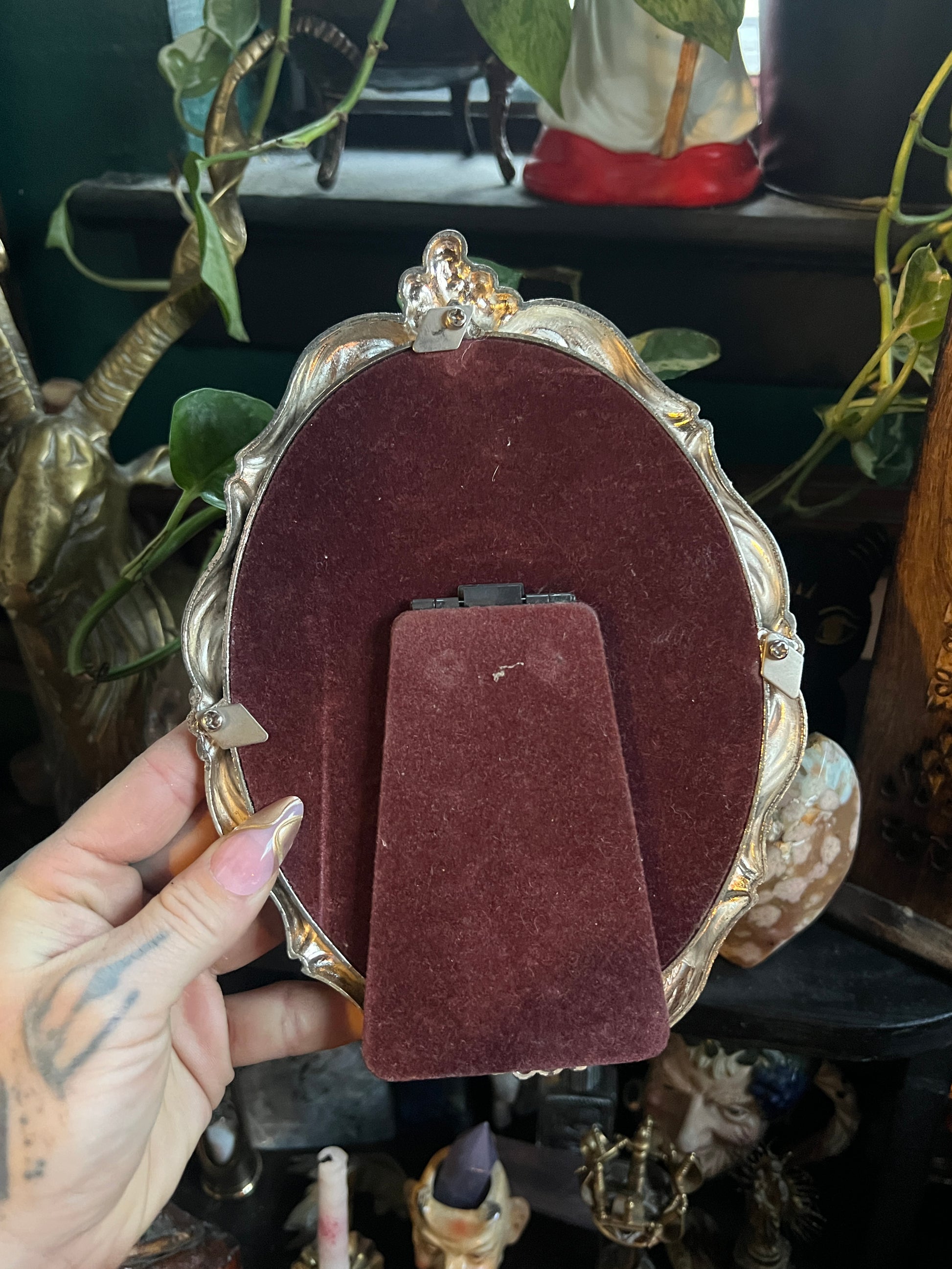 Vintage Silver-tone ornate oval frame from Teleflora with a print of Madonna the immaculate conception