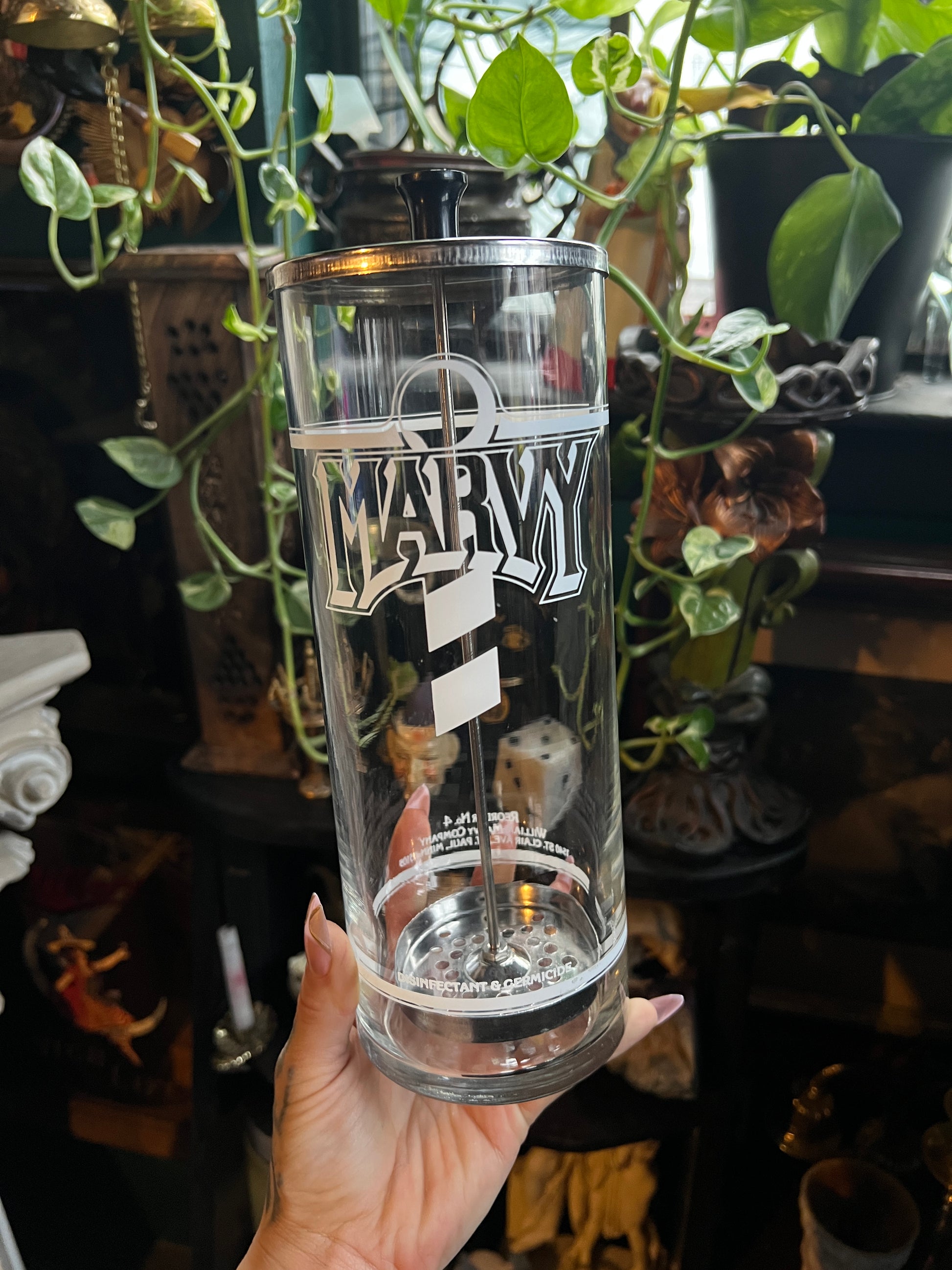 Marvy Vintage Barbers Glass Disinfectant Jar