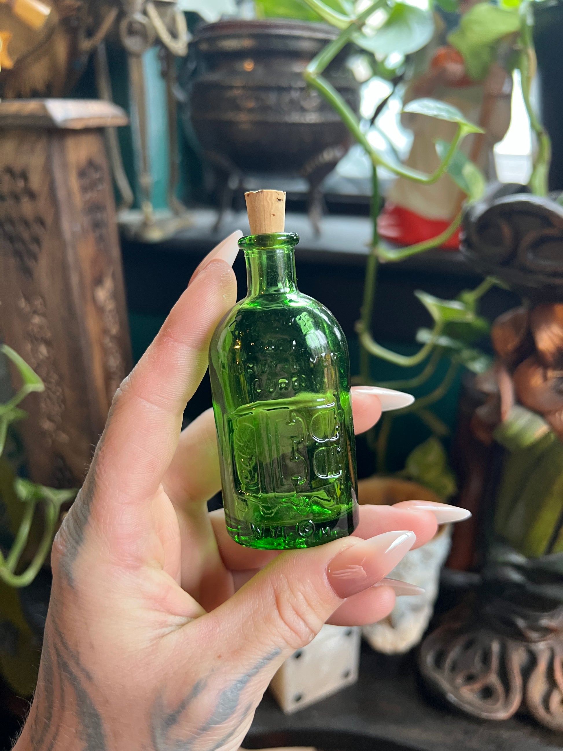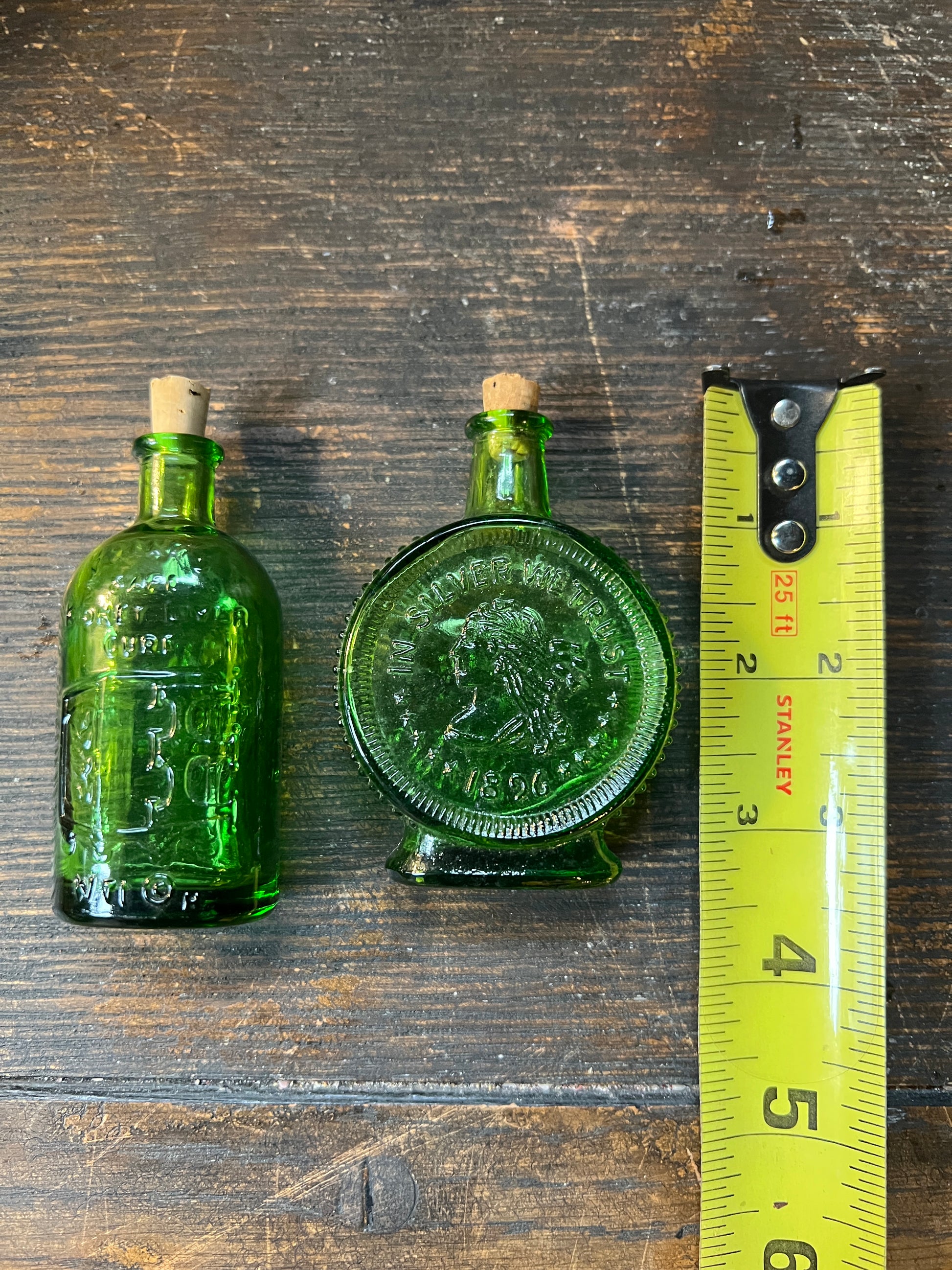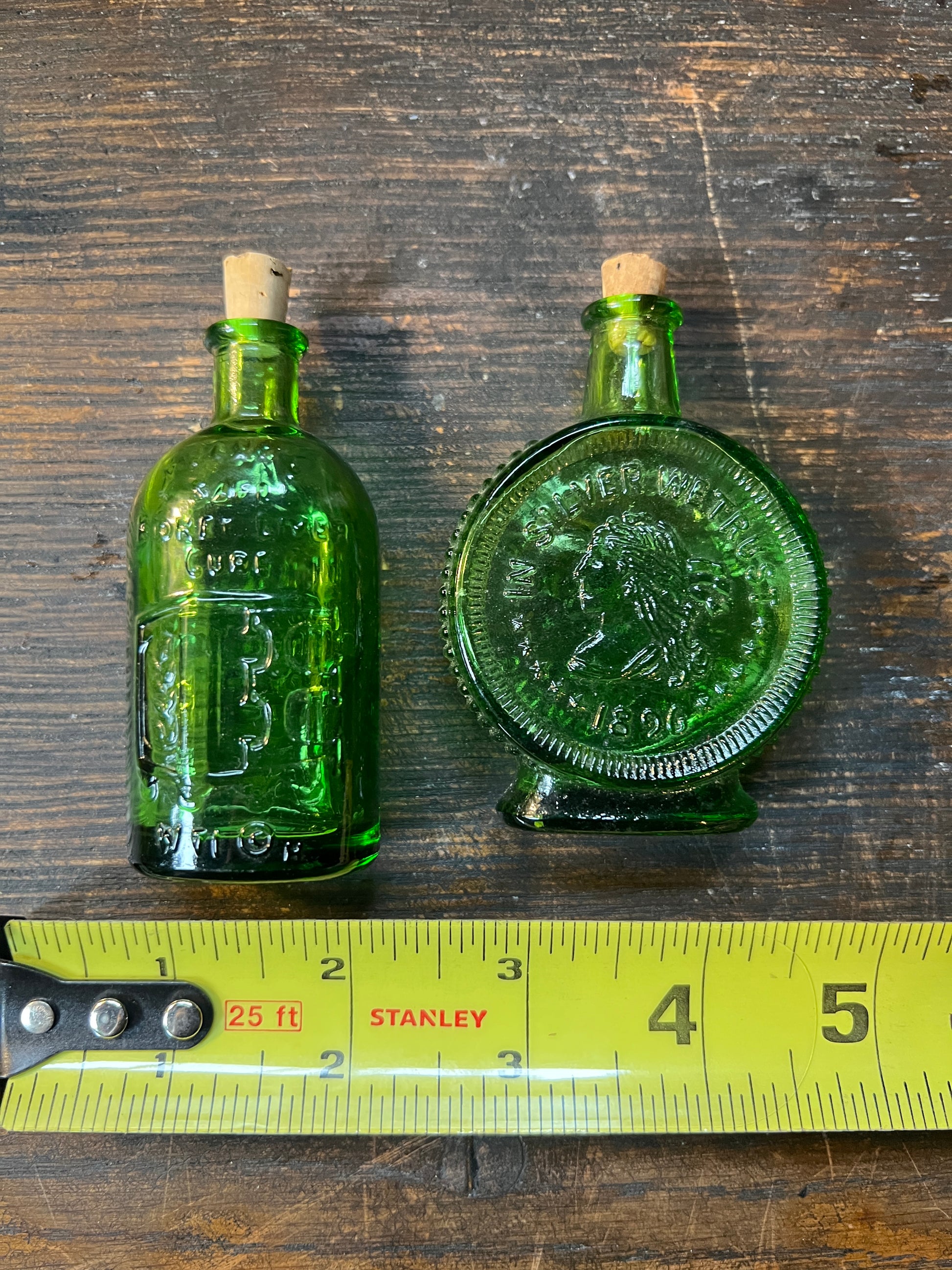 Miniature Wheaton Green Glass Bottles